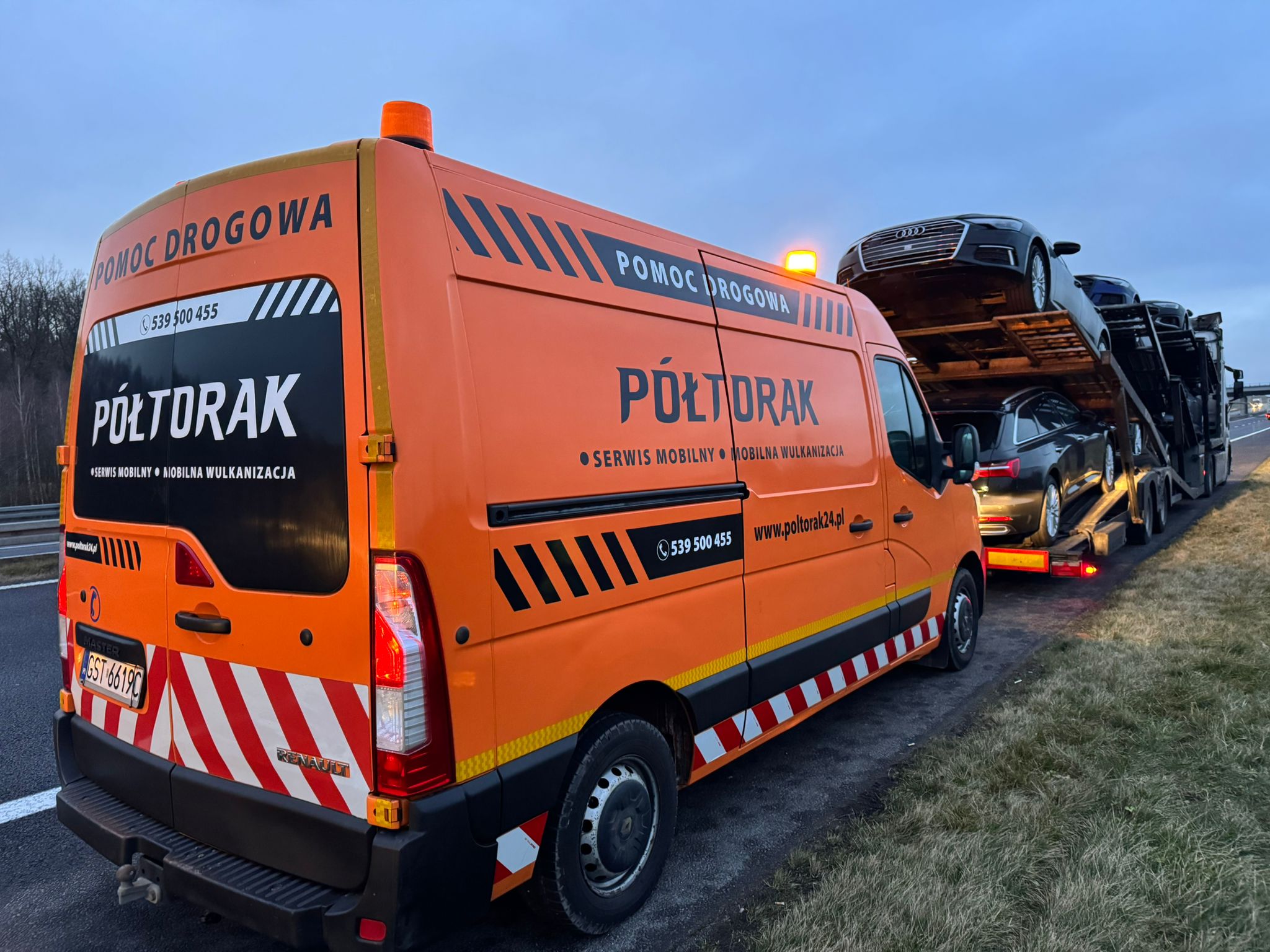 W PÓŁTORAK Pomoc Drogowa oferujemy całodobową pomoc drogową obejmującą: